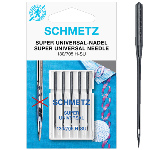 Nõel on kaetud spetsiaalse kleepumisvastase ja libeda pinnakattega NIT (Nickel-Phosphor-PTFE). Super-universal nõela silm on umbes 2 korda suurem kui vastava numbri Universal nõelal (näiteks Nr.70 nõela silm vastab suures joones Universal Nr.90 nõela silmale). Nõela tipp on kergelt ümar ja järsult kooniline – toodetud tööstusõmblusest saadud kogemuste alusel ning töötab praktiliselt kõigil kangatüüpidel