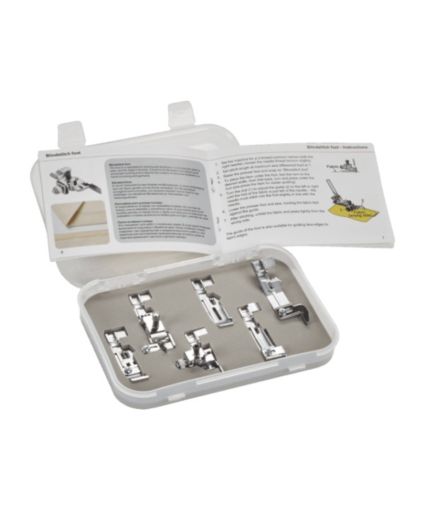 Kuuest tallast koosnev komplekt, mis sobib Bernette overloki mudelitele: Bernette Funlock 44, 46 ja 48.